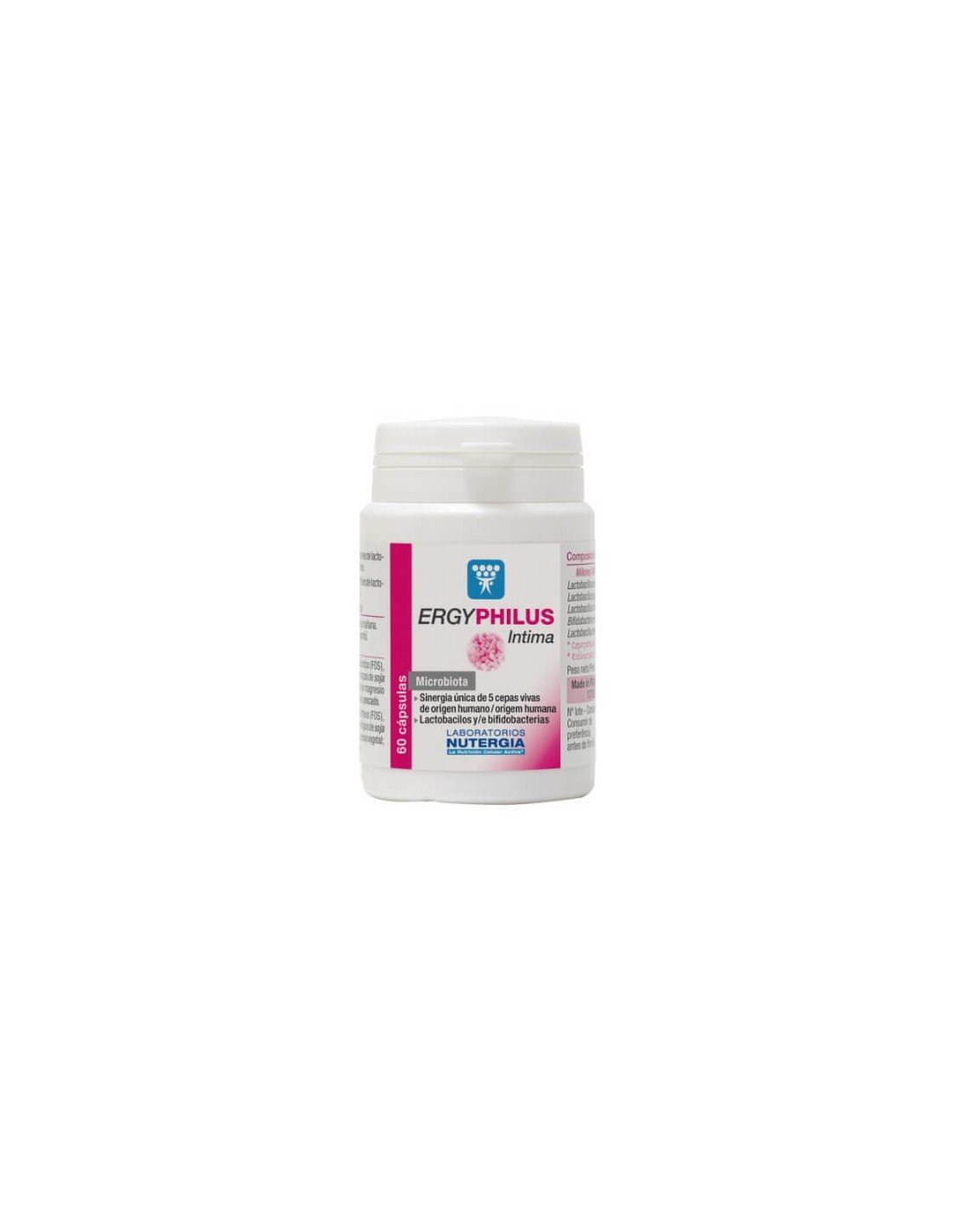 Ergyphilus Intima de Nutergia es una fórmula a base de fermentos lácticos (L. rhamnosus GG y L. gasseri). Ha sido especialmente formulado para favorecer el equilibrio de las microbiotas vaginal y urinaria.
