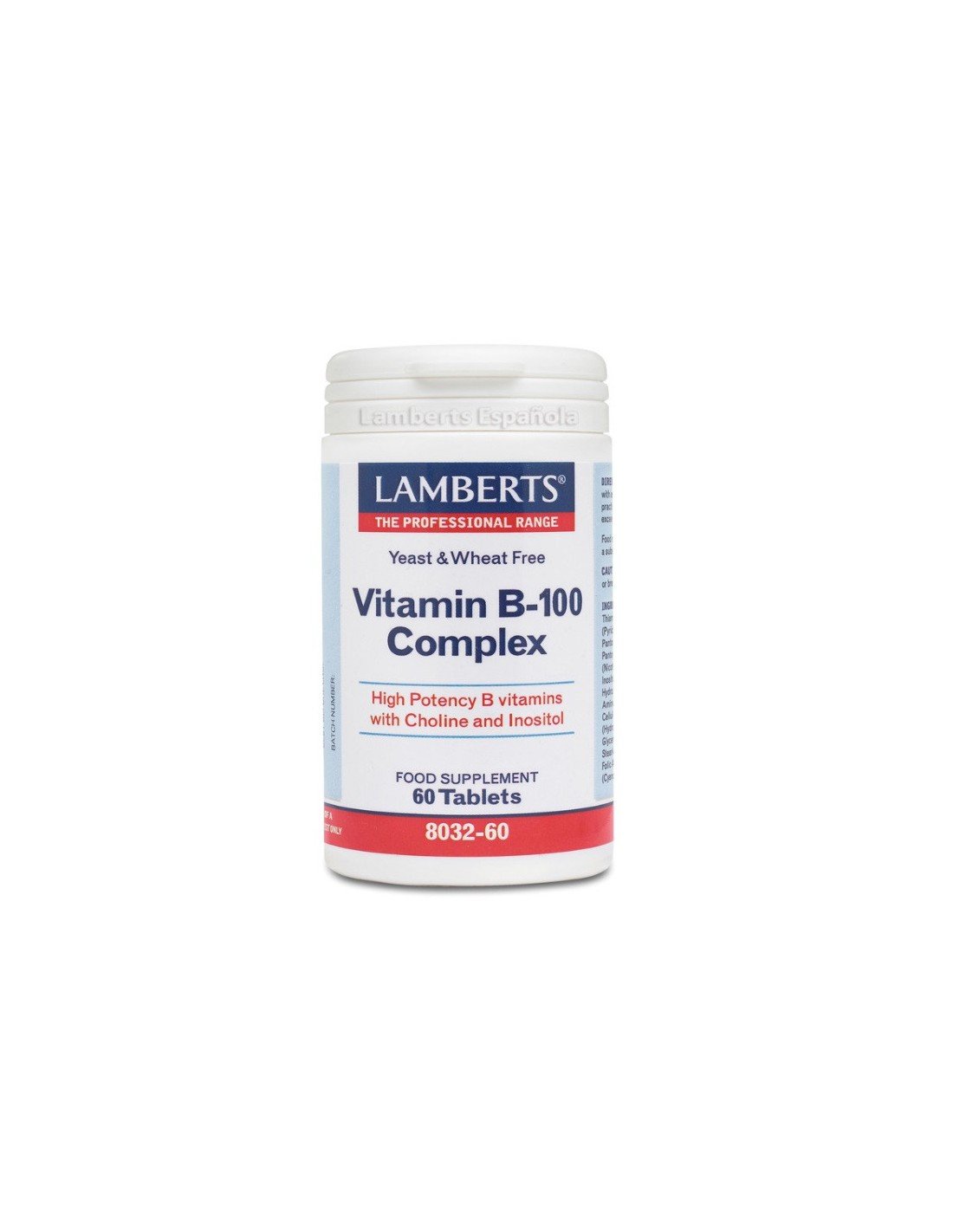 Vitamina B100 Complex de Lamberts es un complejo vitamínico que incluye todas las vitaminas B a unos niveles efectivos y equilibrados. A diferencia de otros complejos del mercado, este producto contiene niveles importantes de colina e inositol, "el alimento del cerebro". Además, tiene una alta concentración,lo que resulta muy útil en situaciones en las que se requiere una rápida mejoría en los niveles de las vitaminas B, debido a requerimientos más elevados o porque la dieta ha sido muy deficiente.